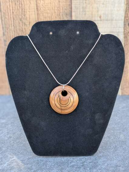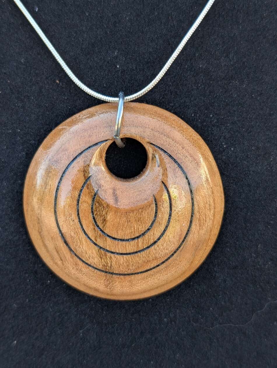 The beautiful grain of this Black Cherry becomes the main focus on this unique wood pendant with black iridescent lines.