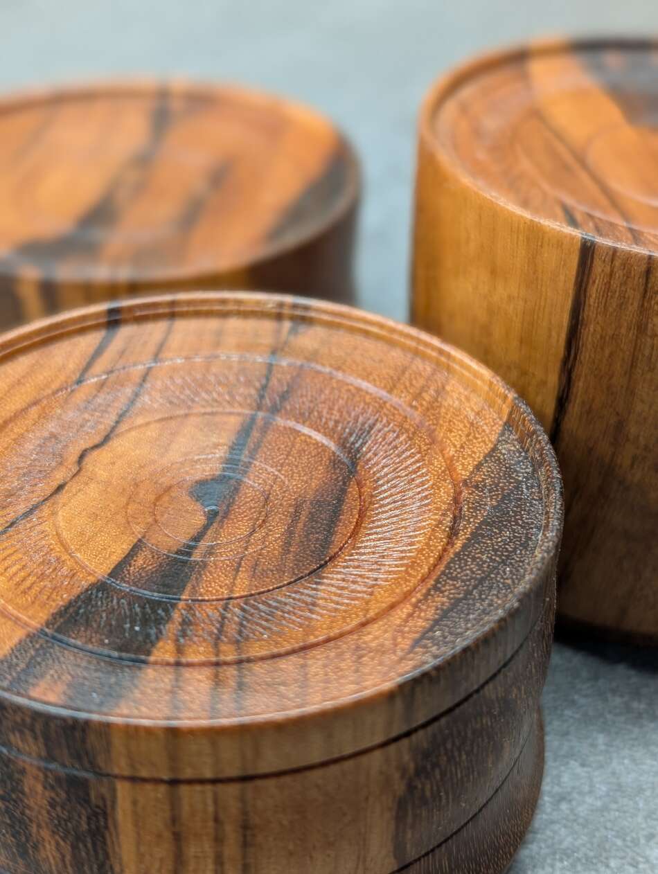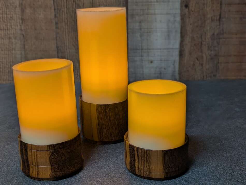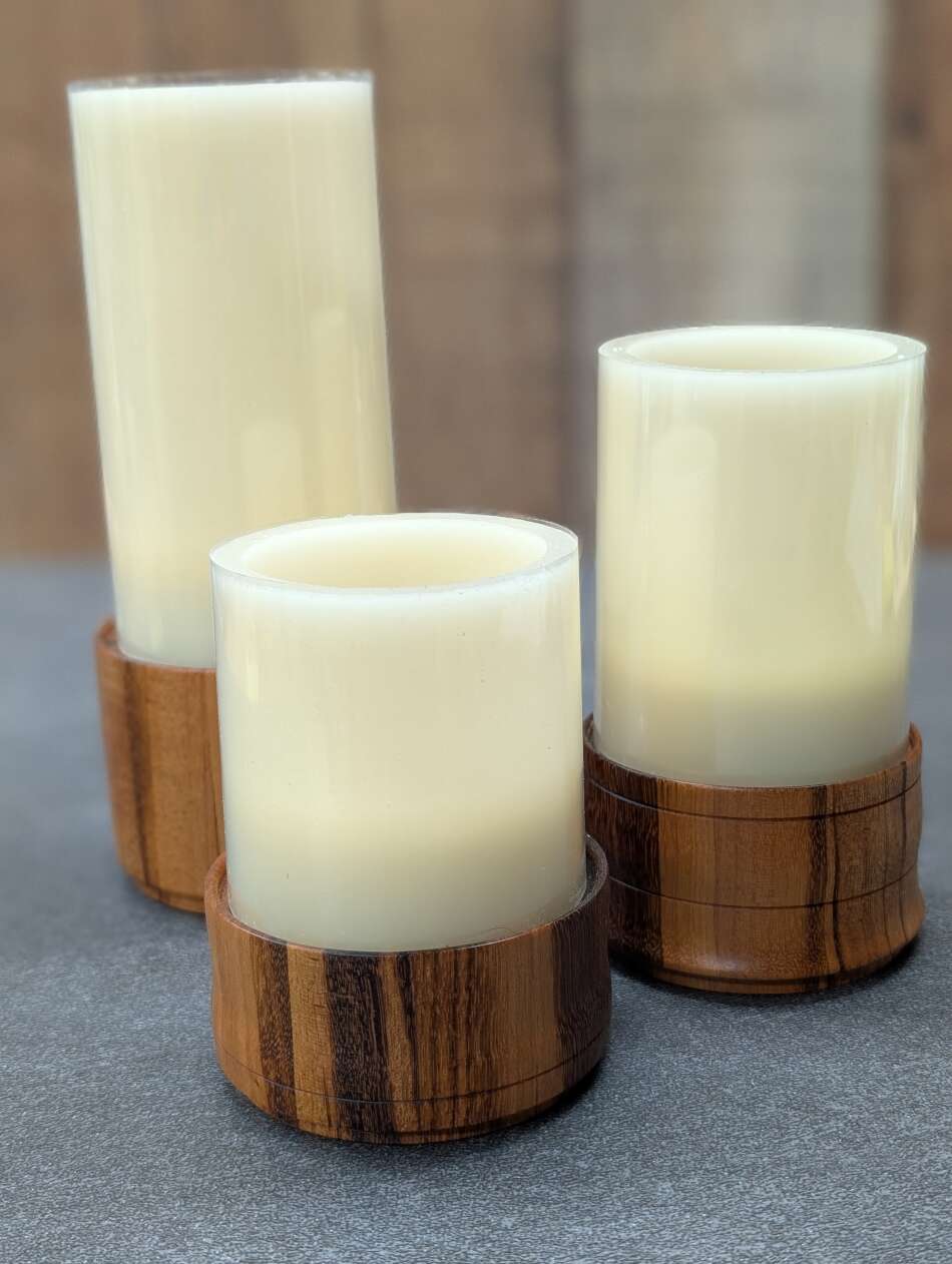 These turned wooden holders are the perfect compliment to safe, flameless candles.