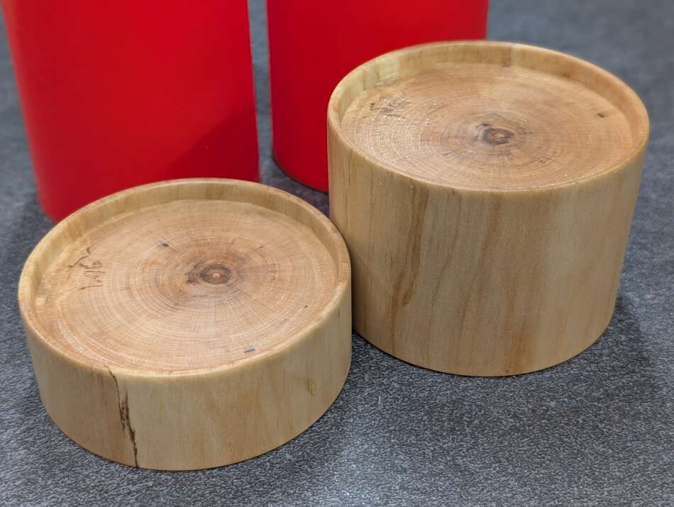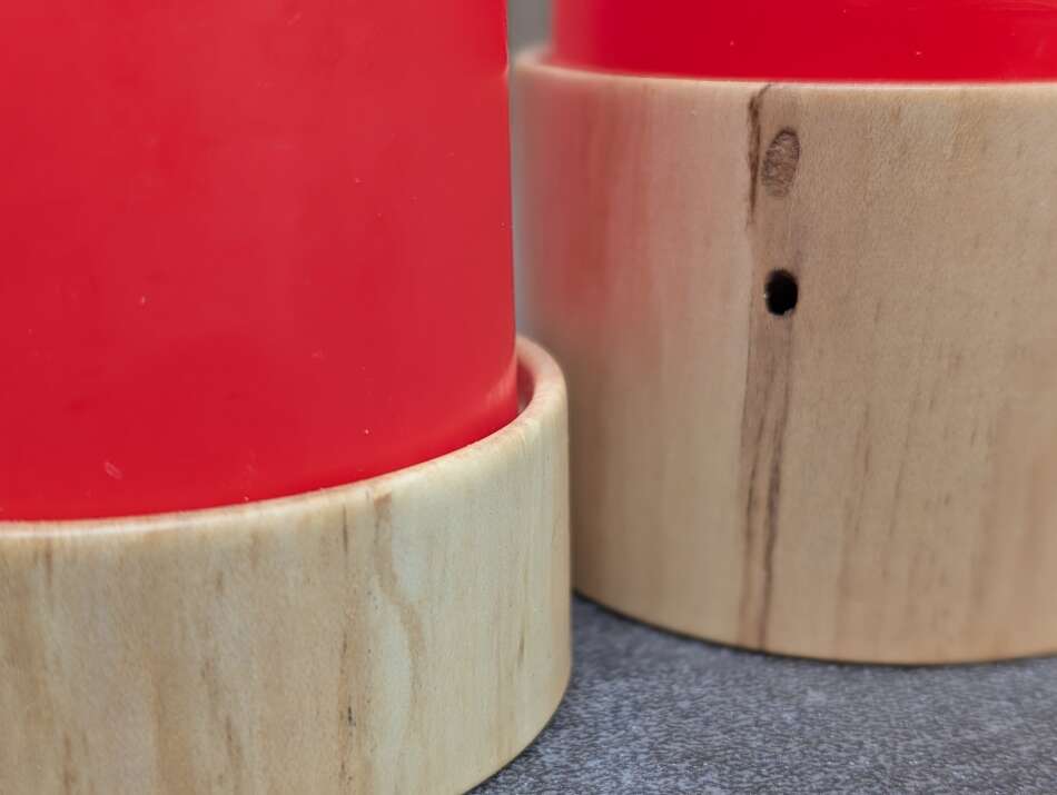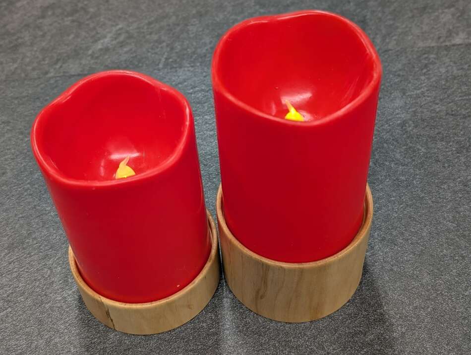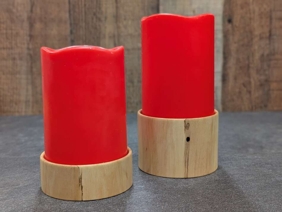 These turned wooden holders are the perfect compliment to safe, flameless candles. The red would pair beautifully with any decor or holiday.