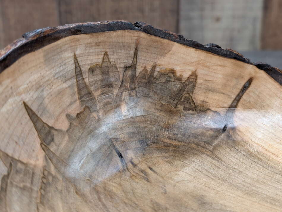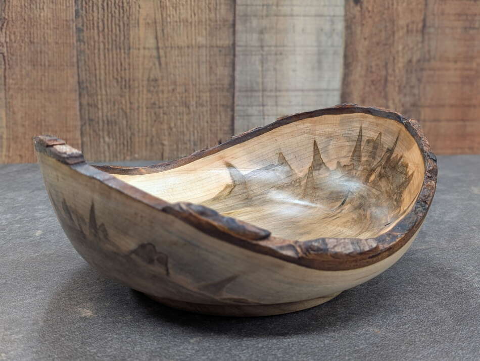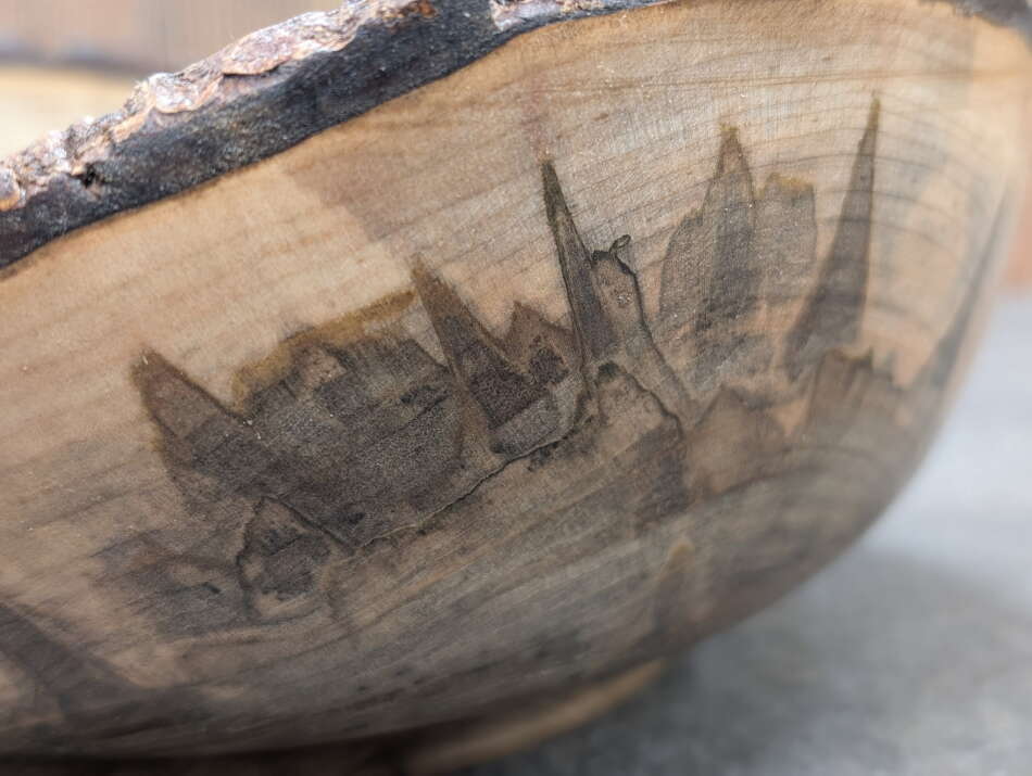 Fun Fact! Ambrosia maple is regular maple that has dark, grayish-blue to brown streaks and small holes created by an infestation of the ambrosia beetle and the fungus it carries.