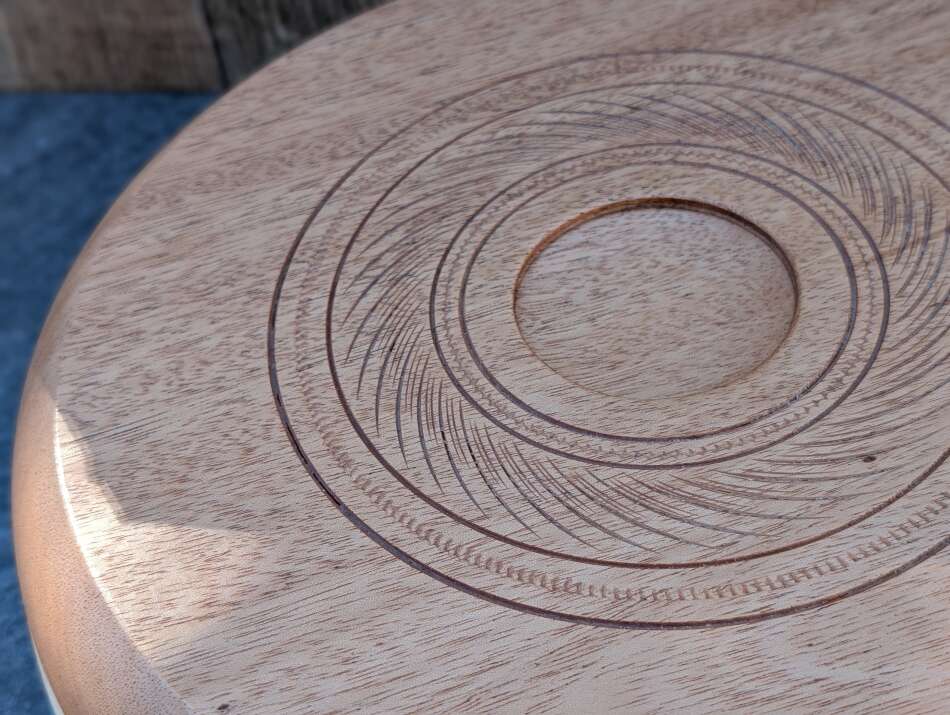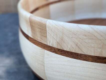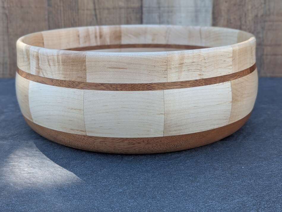 Made from 37 individual pieces of wood glued together before turning, it is sure to be a conversation starter at your next gathering.