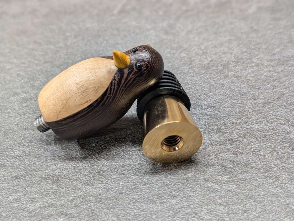 It is made from African Wenge, Maple, and Osage Orange for its beak!