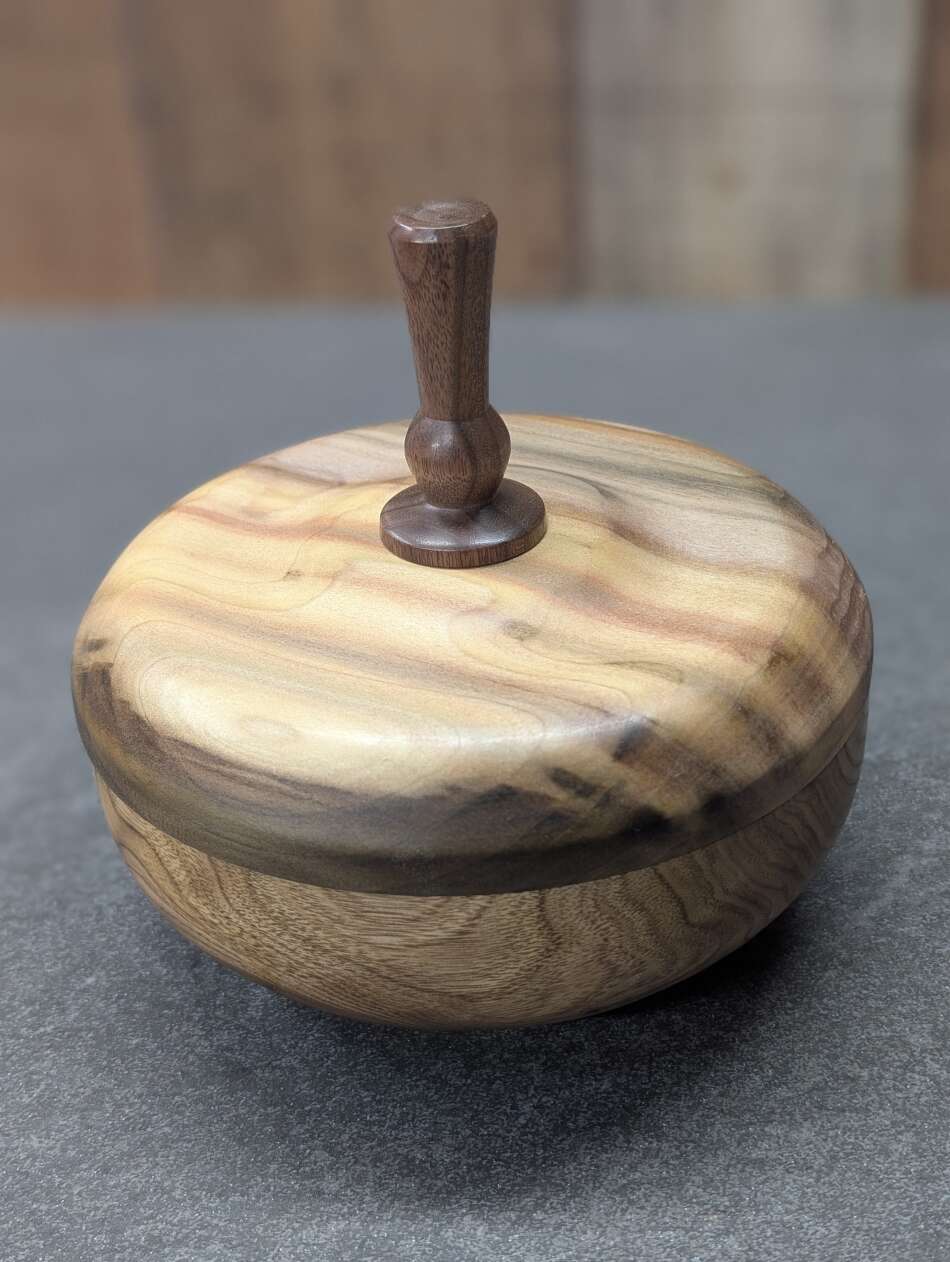 Lidded Vessel - Butternut, Rainbow Poplar and Black Walnut - $45