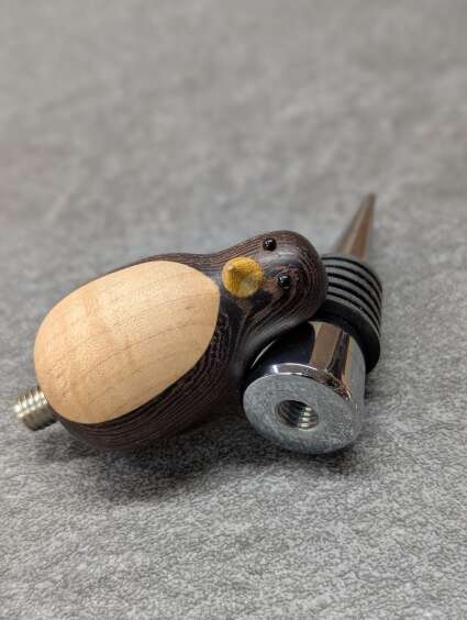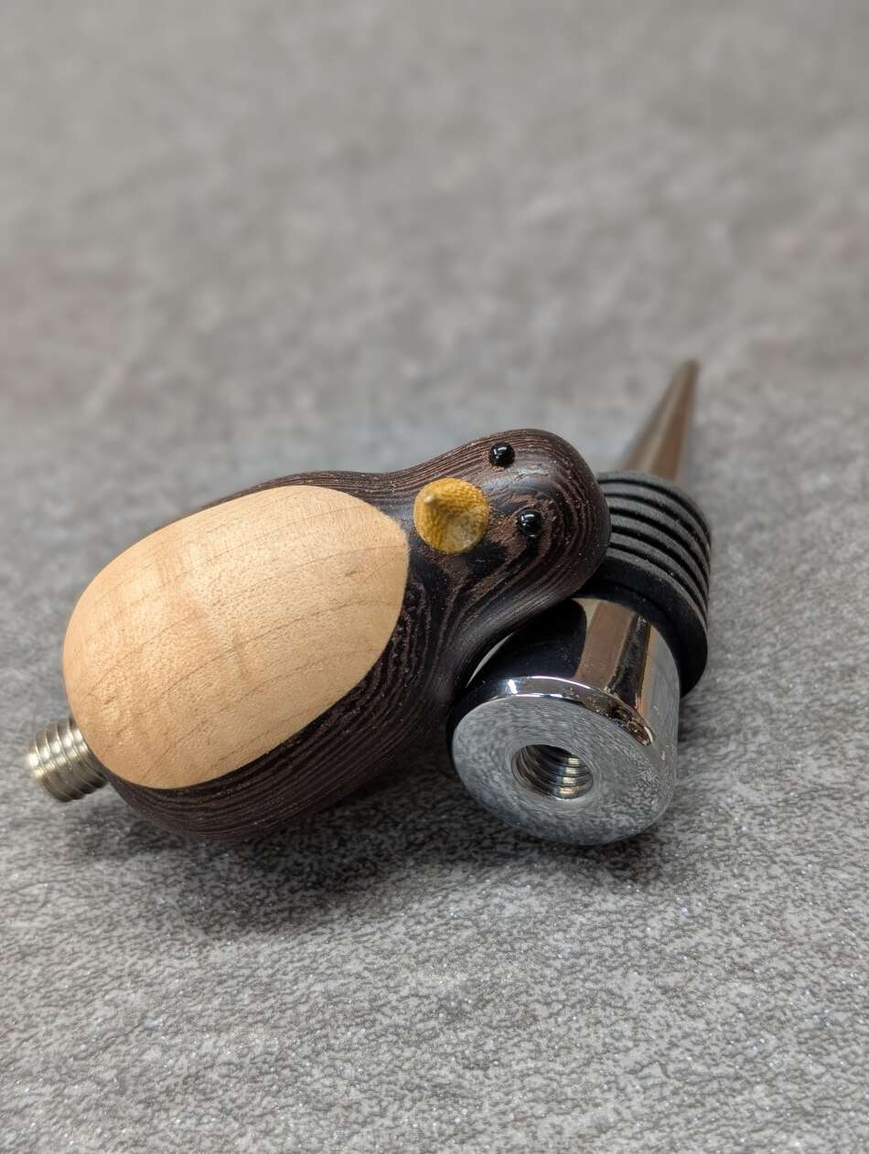 It is made from African Wenge, Maple, and Osage Orange for its beak!