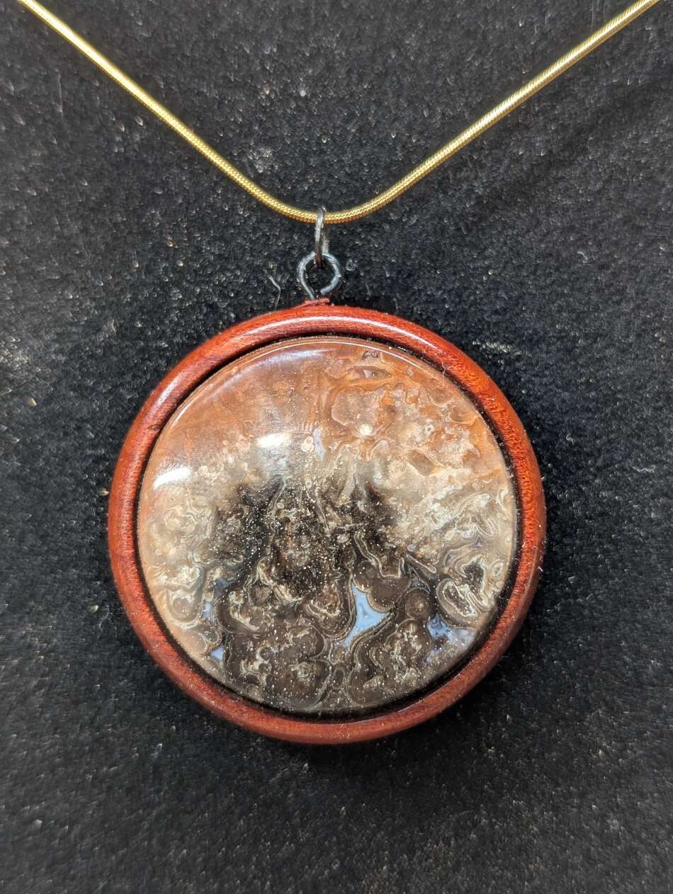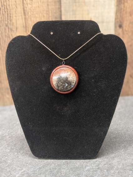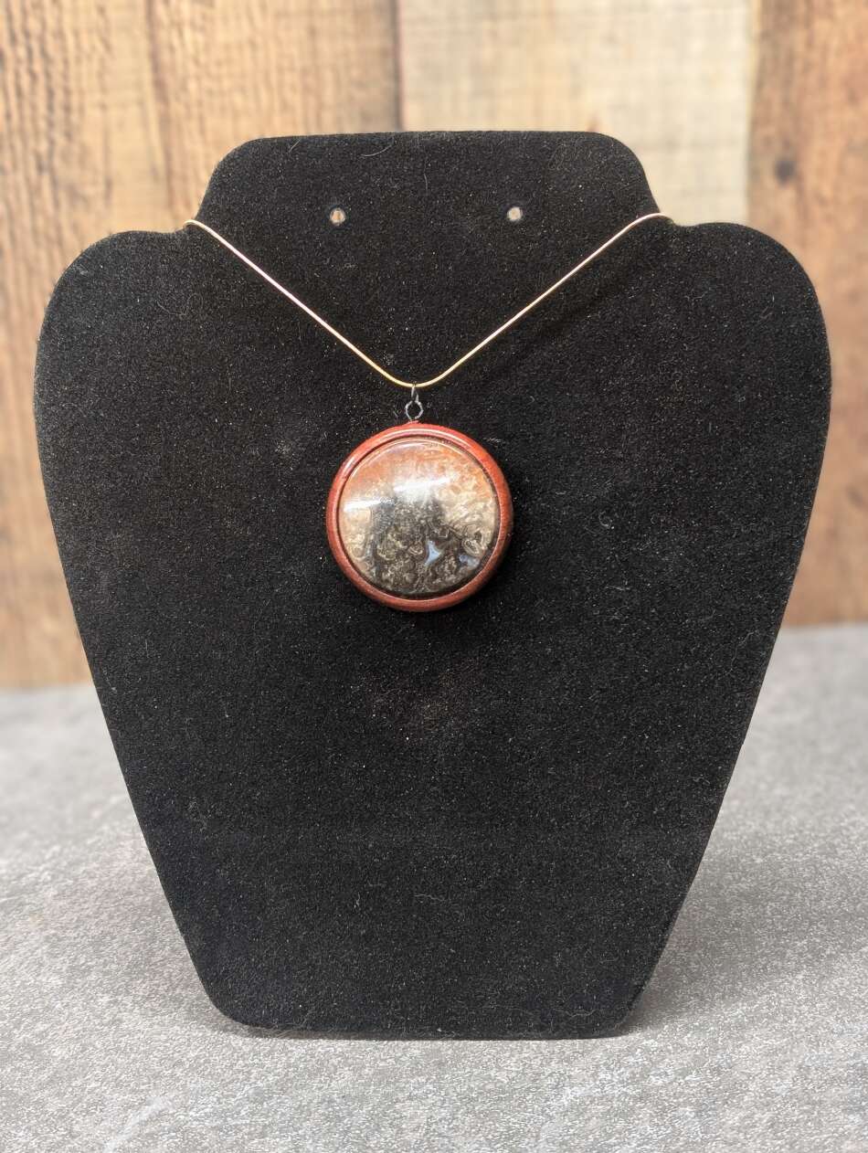 This one of a kind piece was made from a African wood Padauk and features a Jasper stone.