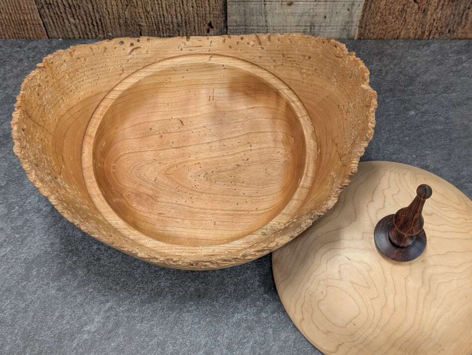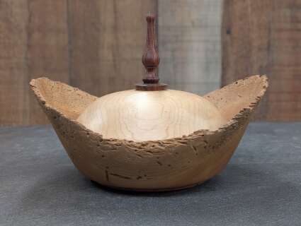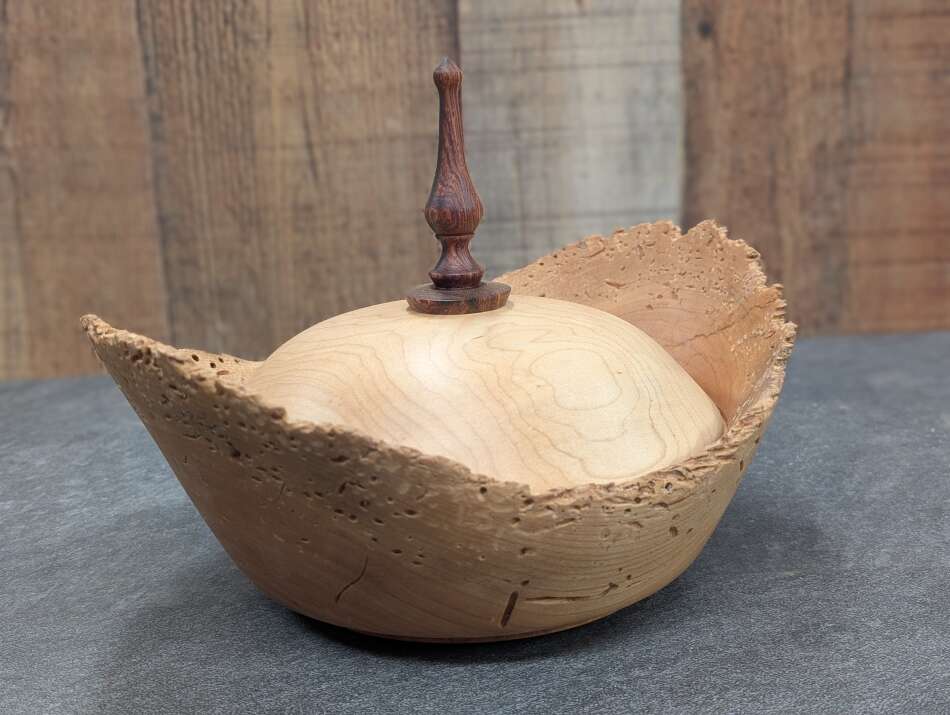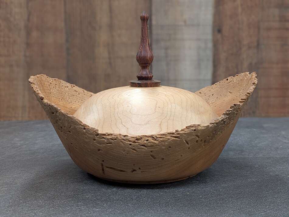 Cherry bowl with Maple Lid & Rosewood Finial - $80