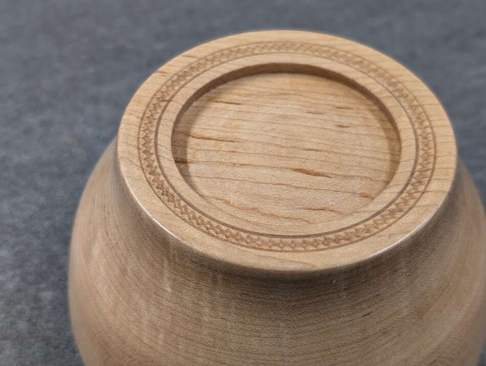 This Cute little bowl is made from Maple. It features a decorative rim and bottom.