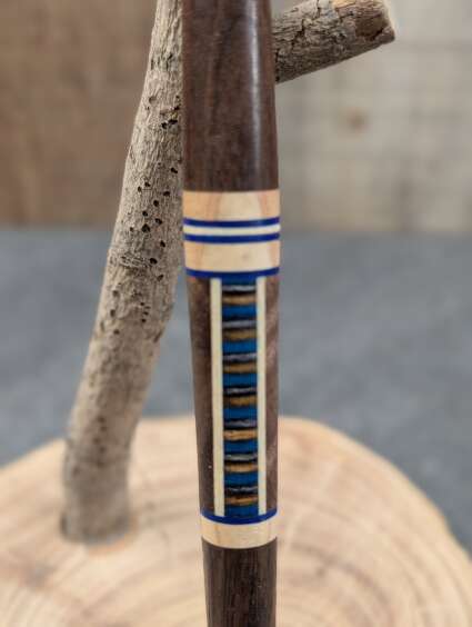 This pen is Black Walnut, Maple and Spectraply with blue veneer.