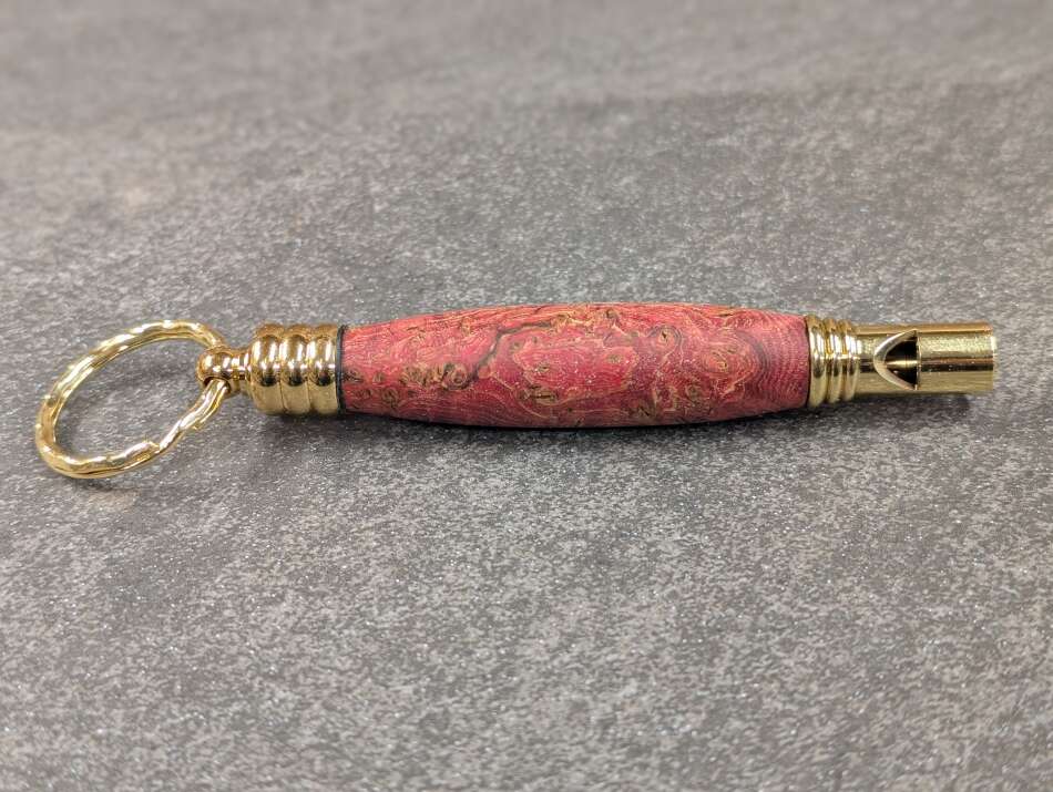 Secret Compartment Whistle Keychain - Dyed Box Elder Burl - $20